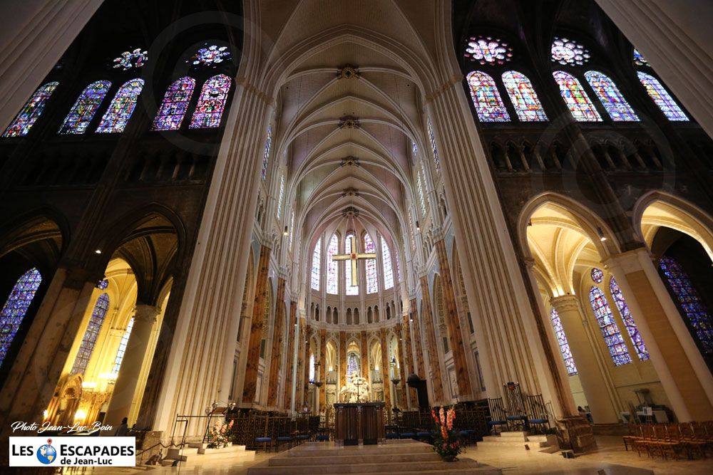 La cathédrale actuelle résulte de sept constructions de différentes époques et se trouve sur l’emplacement d’un lieu de culte druidique du pays des Carnutes.