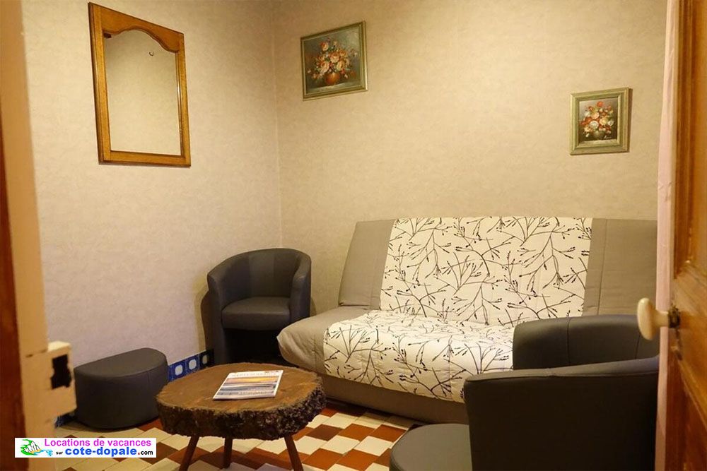 - 1 chambre avec un grand lit 2 personnes et 2 lits d’une personnes.