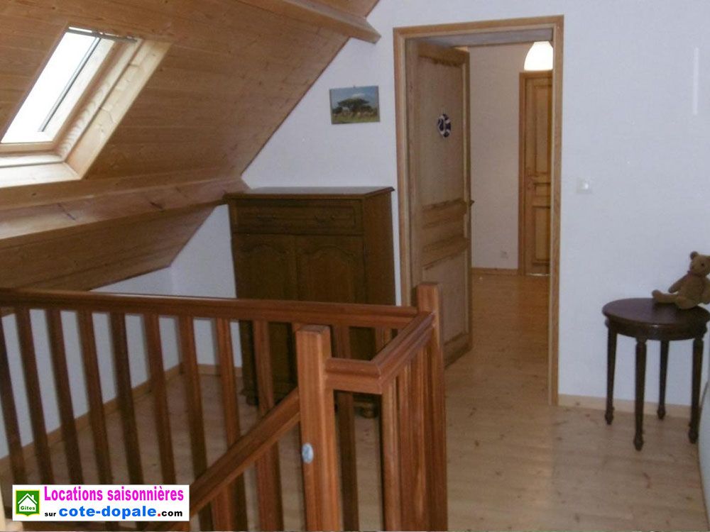 Une chambre côté ouest et une grande chambre centrale sous charpente avec chacune 2 lits 90x190 jumelables, ainsi qu'une chambre d'enfant avec 1 lit 90x190.