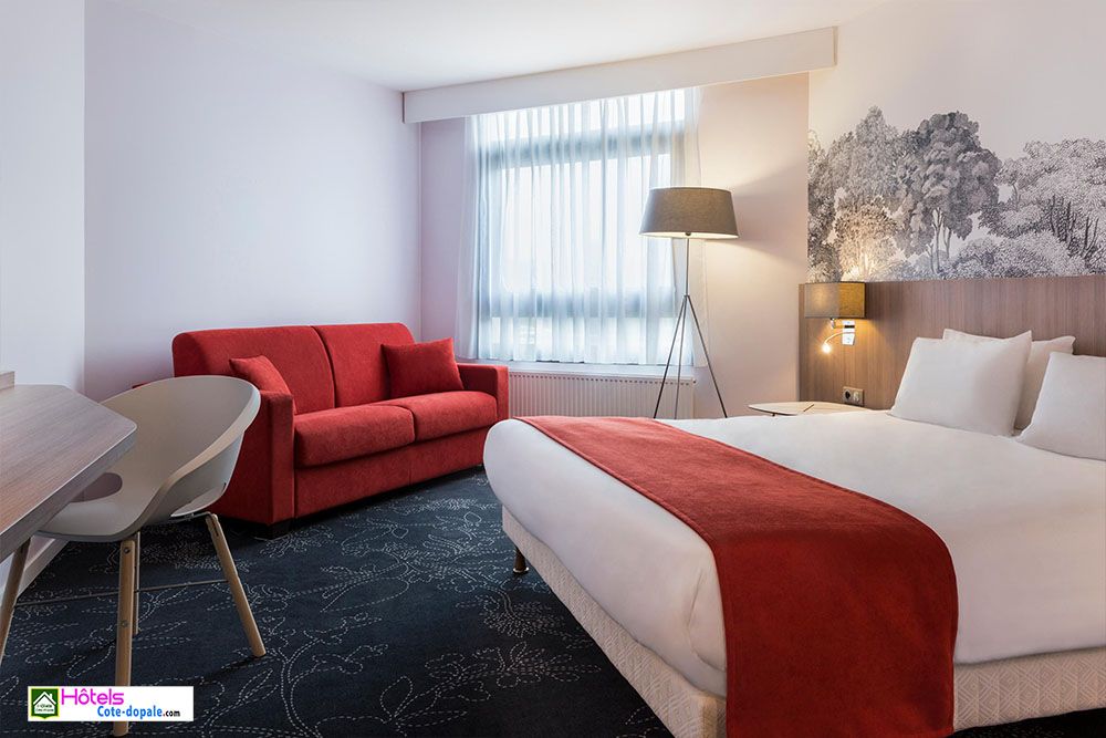Mettez-vous à l’aise dans votre Suite à l’Holiday Inn Calais-Coquelles : 47 m² entièrement rénovée et raffinée, vous propose en plus de son extrême confort, un salon, un bureau et un dressing.
