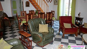 Agréablement décoré, dispose d'un salon et séjour avec un canapé, deux fauteuils et une télévision où vous passerez d'agréables soirées au coin de la cheminée feu de bois.