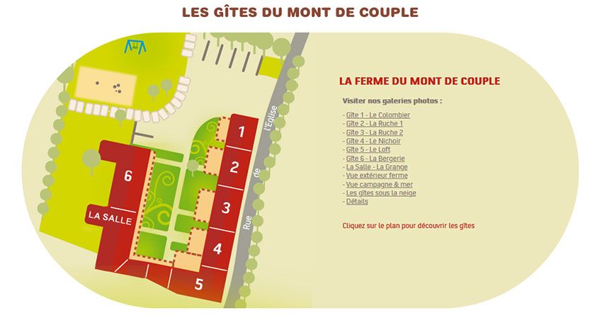 Location à la semaine : 30 € pour le gite 1, 40 € pour les gîtes 2,3,4 et 5 et 50 € pour le gite 6 et la salle