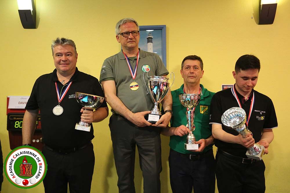 La finale opposait Olivier JACQUEMOND à Olivier DAVID. Comme la partie précédente, Olivier démarrait fort (38 points à la 6 ème reprise) et l’emportait en 23 reprises, malgré les efforts de Olivier JACQUEMOND.