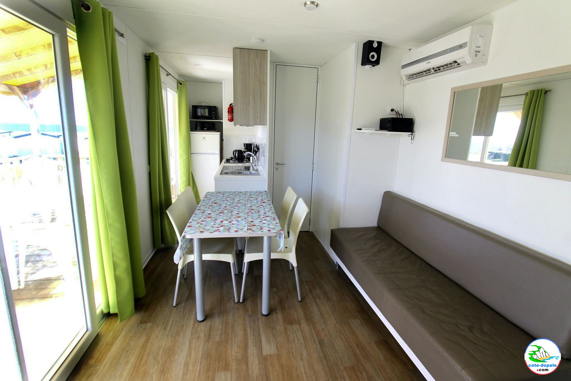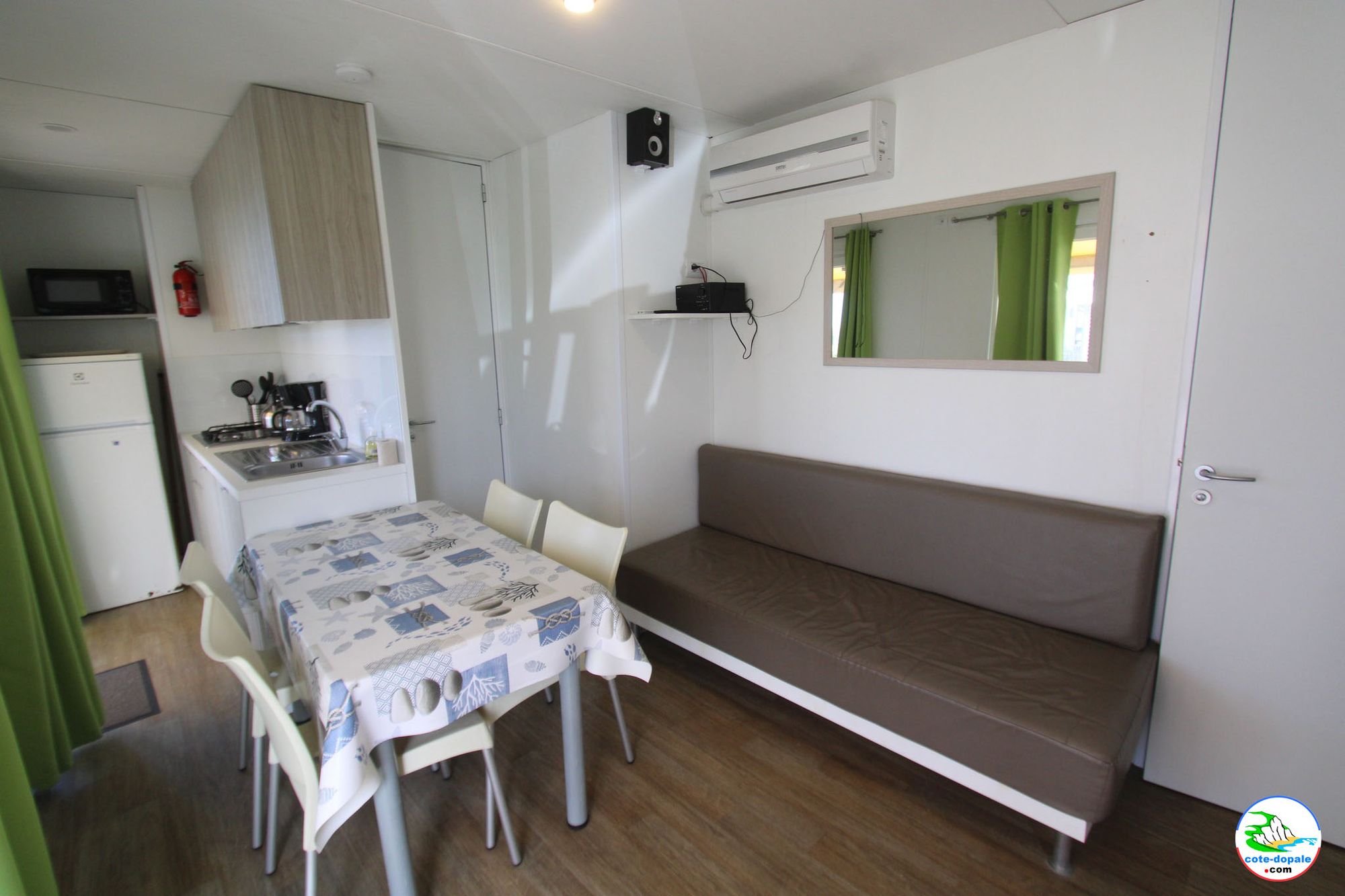 Le mobilhome est équipé de l'air conditionné et du chauffage.