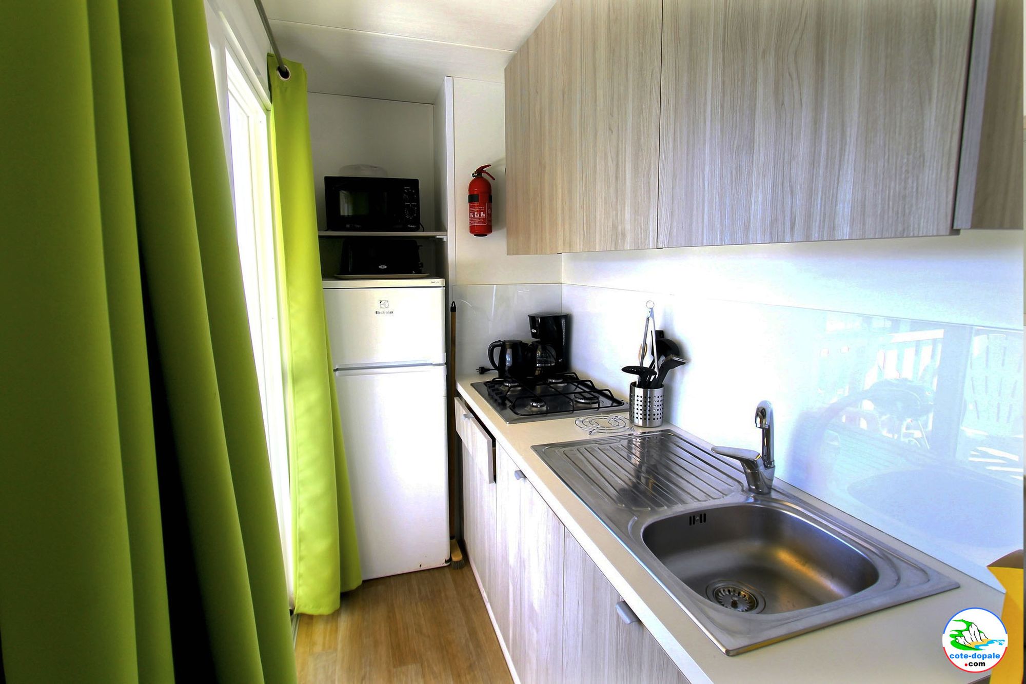 • Une kitchenette totalement équipée et tout le nécessaire pour manger à 6 personnes.